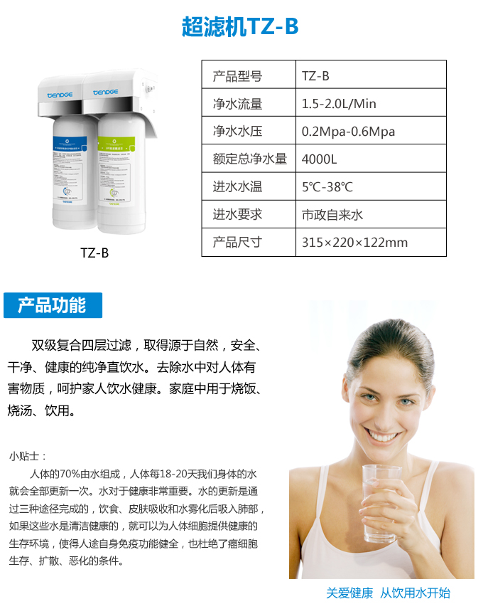 額定凈水量:4000L 進(jìn)水要求:市政自來水