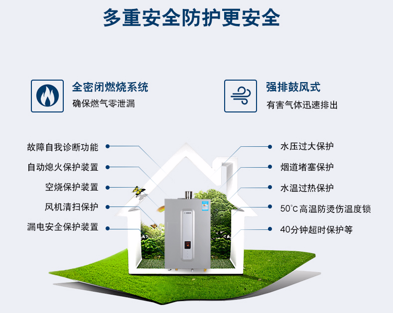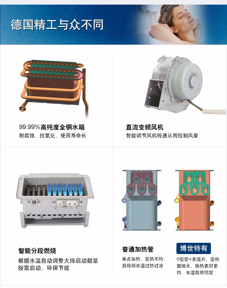 集先進(jìn)的冷凝技術(shù)和智能恒溫為一體,通過二次熱交換器,充分吸收高溫?zé)煔庵械氖S酂崃浚摕岵糠郑﹣眍A(yù)熱冷水,再通過主熱交換器,實(shí)現(xiàn)熱效率達(dá)100%以上。
